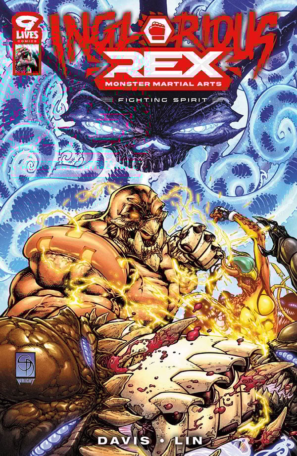 Inglorious Rex 3: Fighting Spirit is a 50+ pages graphic novel by Shane Davis. Rising star MMA fighter Alex Stone steps for the first time into the world of Rex Fighting - where 20 tons of genetically-manipulated clones are hitched to the neural systems of their human pilots, twisted together in no-holds-barred, high-stakes cage fighting.