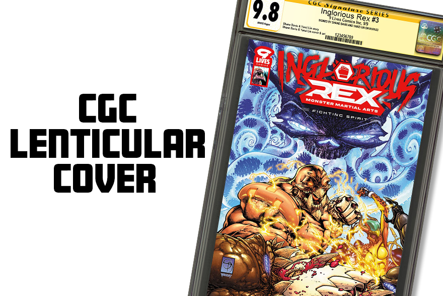 (1) CGC Signature Series Inglorious Rex Vol 3 Lenticular 3D Flip Cover. This book will be CGC graded and signed by both Shane Davis and Yanzi Lin. CGC books ship separately from all other items.