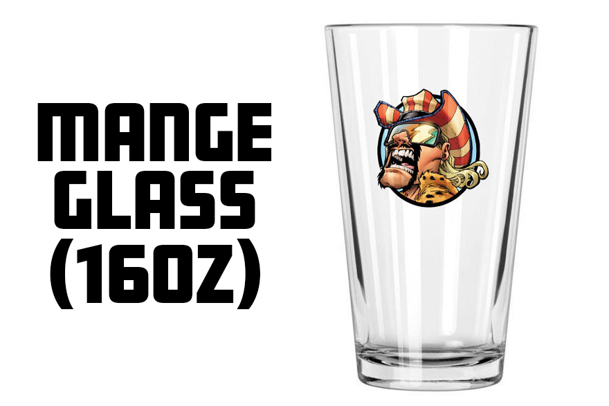 Finally, we heard you guys wanted more Mange, so here is a 16oz Mange Davis pint glass with Mange on the front and the Mange logo on the back! Handwash only, and as it is made of glass, we can only ship it within the USA.