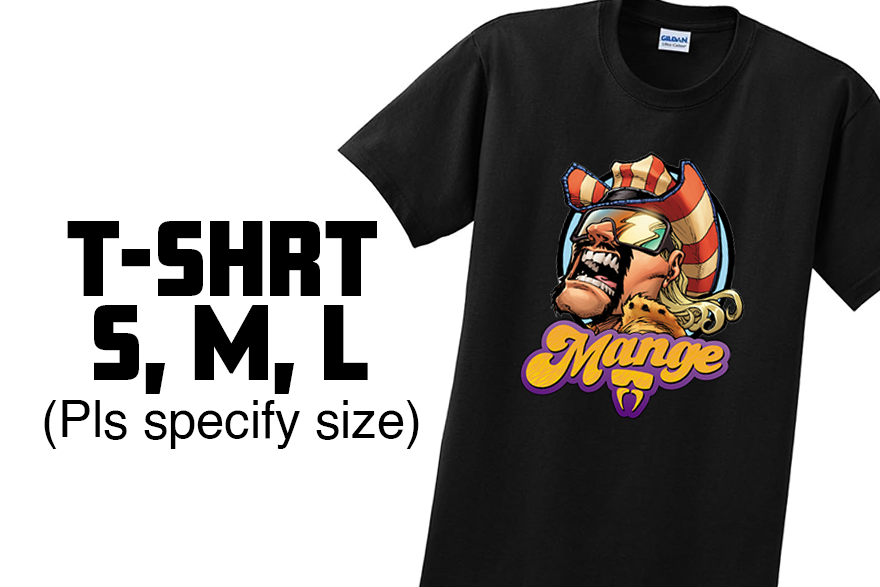 Celebrate all things Mange with this 100% cotton black T-shirt with the Mange logo!